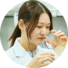 原材料や製品の色・香りなどを確認する官能検査や、食品の安全性を評価する理化学検査を担当しています。専門用語をよく使うため、大学で学んだ食品表示法や食品衛生法など食品に関わる法律や規定についての知識がとても役立っています。また管理栄養士の資格取得を目指した勉強では、栄養学のほか生化学、食品学、調理学など幅広い知識と、何事も前向きに取り組む姿勢を身に付けることができました。品質保証は製品に問題がないように管理を行う裏方の仕事ですが、これがなければお客様に安心安全な「いつもの味」を届けることができません。重要な役割を担っているという意識を持ち、日々業務に取り組んでいます。