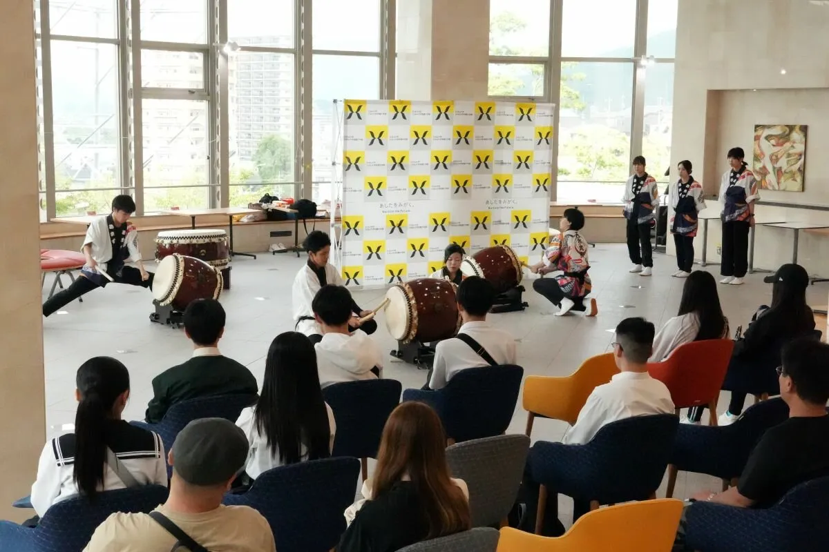 今回は比治山大学をより知っていただくために、学科プログラムやサークルパフォーマンスとして天水太鼓部に出演いただきました。