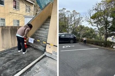 学内の備品が破損していないか、たばこの吸い殻が落ちていないかなど日々の学生生活で気になることが無いか見ています。また、学内見回り中に気づいた点は学生支援課職員の方々に連絡・相談を行い、対応や改善をしています。