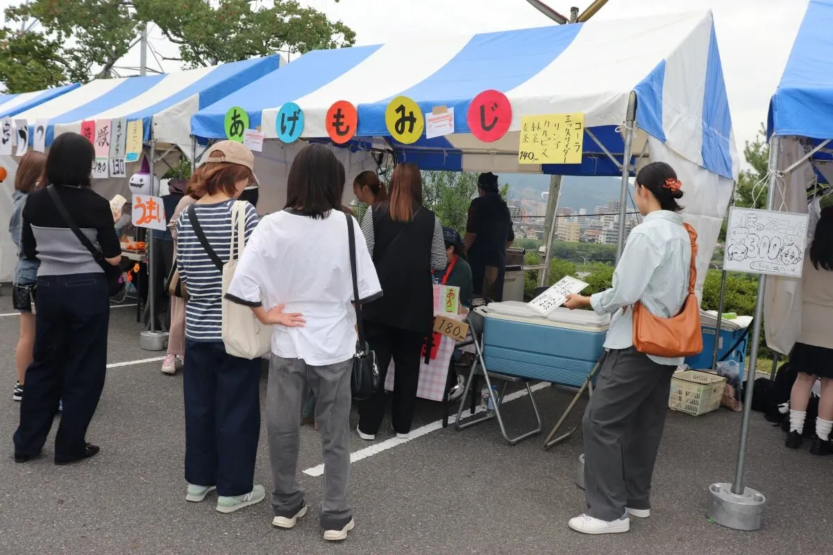 メインステージでのパフォーマンスでは、「HIJIKARA‘24」(カラオケ大会)からはじまり、神楽部、天水太鼓部による公演、フォークソング部によるバンド演奏、ダンス部、KoreanCulture部や比治山女子高校ダンス部のパフォーマンス等で来場者を魅了し、二日目にはお笑い芸人(完熟フレッシュさん、モグライダーさん)によるライブや抽選会でおおいに盛り上がりました。ステージ前に設置した模擬店会場では、学生が餃子やポップコーン等の屋台を出店し、会場は活気に溢れていました。